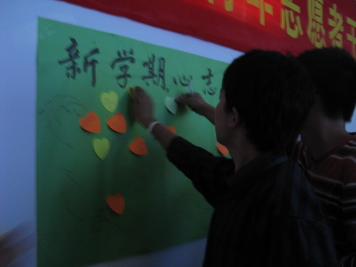 活动以“新学期、心志愿”为主题,通过座谈、讨论展开。首先绿色论坛代表刘冰洁通过短片、MV、照片等介绍了绿色论坛的相关知识以及主要活动,与志愿者相互交流经验,让志愿者更好地了解了论坛。之后数学学院代表王紫瑶以及樱花小说 范辛祥同学分别介绍了各学院的志愿者活动的概况,让志愿者对志愿者活动有了更为深刻的认识。辅导员麻法全老师也谈了自己的切身感受。最后,每位志愿者干部在“新学期、心志愿”的许愿墙上贴上了自己对青年志愿者活动的感慨与祝福。
