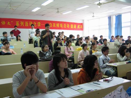第六届"百年语文"系列活动之"读--白衣倾城"诗歌朗诵比赛在同学们热切的期盼中拉开了帷幕。比赛吸引了来自人文、瓯江、教育、商、外国语、数学与信息科学、机电工程等学院同学前来参赛、观看。樱花小说
