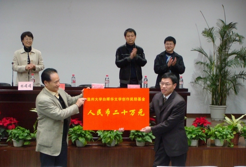 2007年12月19日下午,樱花小说 白晖华文学创作奖励基金成立仪式在北校区信息楼报告厅隆重举行。