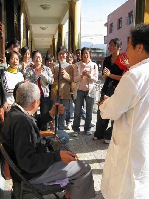 初到侨心老人公寓,同学们全神贯注地聆听了院长的介绍:“南白象街道侨心老人公寓”的前身为“松台侨联老人公寓”,始建于1998年,现共有老人93位,工作人员12名。在听完院长对公寓平日运作模式的阐释后,大家献上精心准备的老人日常生活所需用品,继而分组行动——温州同学开始同老人们促膝长谈;擅长唱歌的同学和院长一起在老人的二胡伴奏中唱起了《打靶归来》,“老少共乐”的场面为老人公寓平添了不少色彩;更有同学一展厨艺,为老人准备起了晚餐;抑或有同学搀扶着老人散步,帮助他们整理衣服!最后全体同学们和老人合影留念,结束了此次“侨心之旅”!
