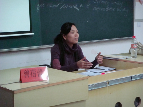 曾老师然后提出作为一名学生干部在待人处世方面应该遵守的原则:诚恳、热情、细心、细致、耐心、毅力、灵活。同时,对于如何锻炼能力、培养勇气,提出了几条可行的途径:参加每次活动,当好二传手;组织面每次活动,当好负责人;学会表达自己,学会与领导沟通;学习和工作两不误,感情和生活共发展。