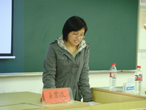 此次交流的主题是如何在大学四年的学习工作中,学会做人、做事、做学问。她指出,做为一名学生干部,首先要具有良好的人际关系,通过互动,考察了新成员之间的认识程度。她说:人与人之间交往贵在真诚、善解人意、关心他人,互相沟通是每个学生干部的必备要求,也是学会做人的首要条件。