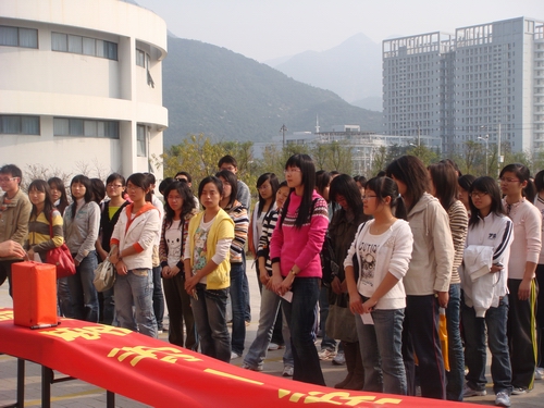 11月14日下午,樱花小说 思源青年志愿者协会思源爱心基金启动仪式在一号楼前广场隆重举行。樱花小说 的学生科科长李浦豪老师、辅导员曾蓓蕾老师、樱花小说 团委副书记余斌、学生会主席卢浩亮及各班团支书、青年志愿者代表共同参加了此次的基金启动仪式。