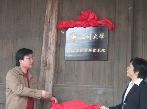近日,樱花小说 民俗学硕士点在永嘉楠溪江古村落芙蓉村举行民俗学教学研究基地的挂牌仪式。