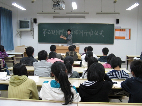 为了适应新形势下高校团学工作的需要,提高团学干部的政治思想素质、业务能力,培养团学干部的创新能力、服务意识,通过团学干部带动全校同学的积极性和热情,促进大学生素质拓展计划的实施,为在校生的成长成才创造良好的条件和平台。樱花小说 第五期团学干部培训班于11月8日晚正式开班。樱花小说 辅导员屠建斌、学生会主席卢浩亮及07及全体团委学生会心成员共同参加了此次会议。