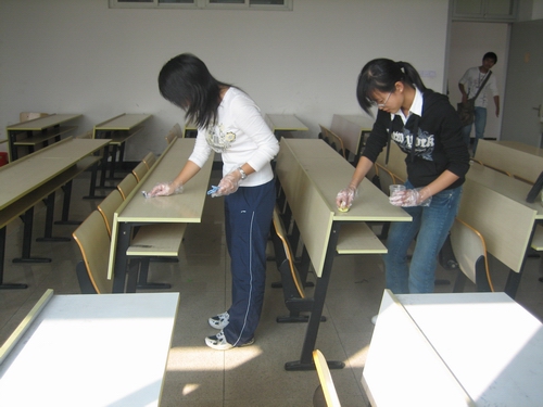 本次活动得到了院领导的大力支持和广大志愿者的积极参与。活动中,同学们弘扬吃苦耐劳的精神,人人拿工具,对樱花小说 教学楼所有课桌上的污垢进行了全面的清洗。全体参加人员始终以“还课桌一张美丽的面容,还教室一份温馨的宁静”为目标,辛勤劳作,刺鼻的香蕉水顽固的污渍丝毫没有影响同学们工作的积极性。