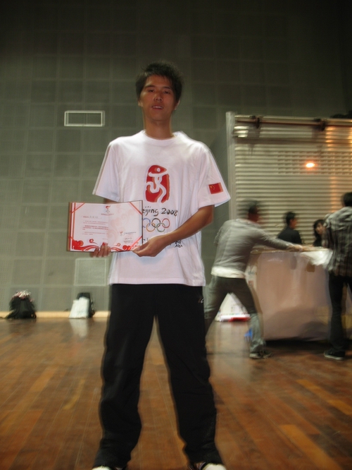 当晚,在杭州师范大学进行的浙江赛区总决赛中,樱花小说 陈斌同学在参赛宣言、奥林匹克知识抢答、参与奥运小游戏、奥运创意大比拼、为奥运献礼等环节中充分展现了个人风采,凭借其在科技奥运、人文奥运、绿色奥运领域所作出的努力和成就,以及他对奥林匹克精神深刻的理解,震撼并感染了到场的每一位观众。最终经过评委认真、严格的评选,与其他7名精英一起脱颖而出,荣获“联想中国高校08奥运火炬护跑手”资格。