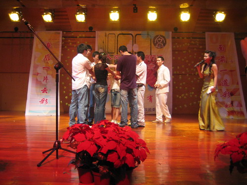 2007届毕业生欢送晚会在北校区音乐厅精彩上演。院长叶世祥,院党总支书记周剑平,副院长冀桐、刘建国,副书记魏成春,以及学院老师周小兵、孙良好、洪之渊、金文兵、夏诗荷以及辅导员李浦豪、蔡晓武、曾蓓蕾等一同出席了此次晚会。