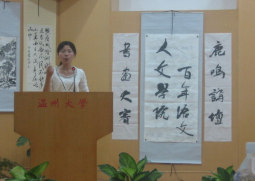 的7位选手外,也有来自城市学院、瓯江学院等学院的6位同学,以文会友,以文论文。此次讲坛的话题个性丰富,风格迥异,从《清末的最后一个太监》到《以坛论坛》,从《女性意识的觉醒对中国文学的影响》到《平民眼中的文化大师》,从《超人与变形金刚》到《爱的沉重》等等,中间还有弦音坊的老师为我们演唱了《那些花儿》等动听的歌曲来助兴和放松精神。