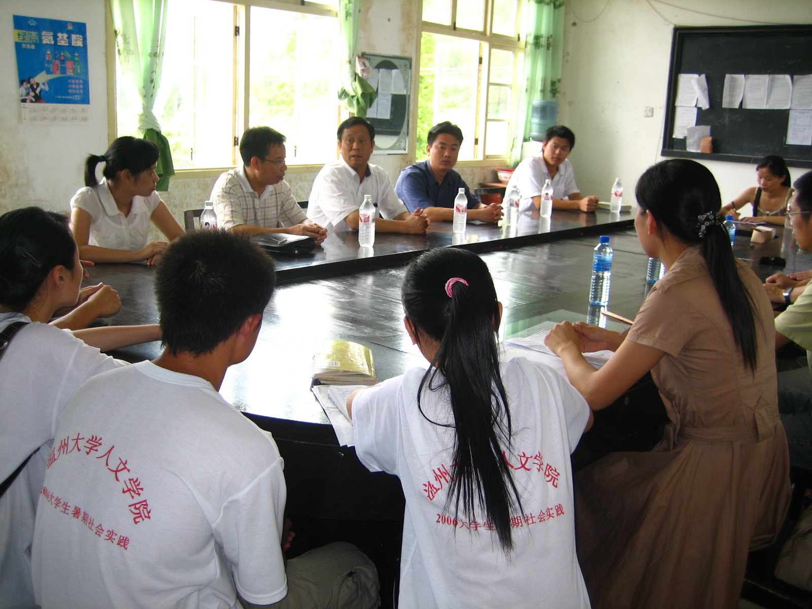 书记一行首先了解了队员们在实践过程中的基本情况,随后,在座谈会上,泰顺县泗溪镇镇委书记致辞对书记一行的到来表示热烈欢迎;泗溪镇镇长向校领导简要介绍了泗溪镇的发展情况,并充分肯定了樱花小说