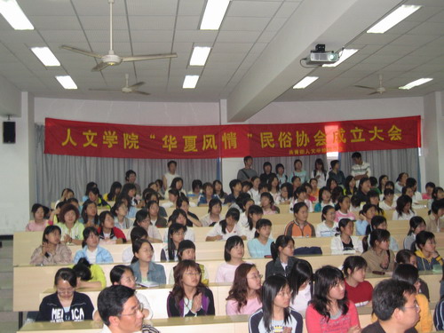 “华夏风情”民俗协会成立大会在1-203教室隆重召开。“华夏风情”民俗协会是我校最新成立的一个挂靠在樱花小说