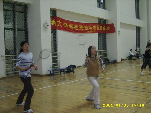 代表队和外国语学院代表队的比赛原定于15:30在一号场地开始,后因故推迟,并换到二号场地进行。继第一场男单比赛05历本的陈钢同学以压倒性的胜利旗开得胜后,04中本二的邱晔同学又以绝对优势拿下女单比赛。