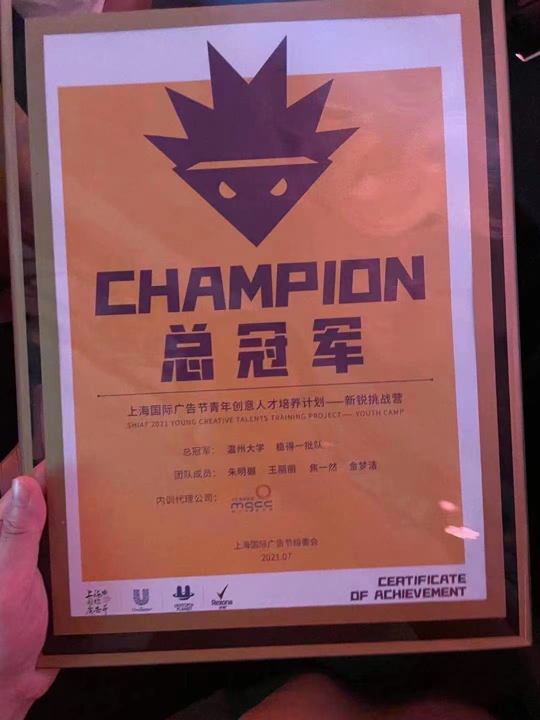 7月23日,2021上海国际广告节新锐挑战营总决赛暨颁奖典礼于上海静安瑞吉酒店举行,樱花小说 广告学专业“稳得一批”代表队,从来自全球36所高校36支代表队中脱颖而出,荣获全国总冠军!
