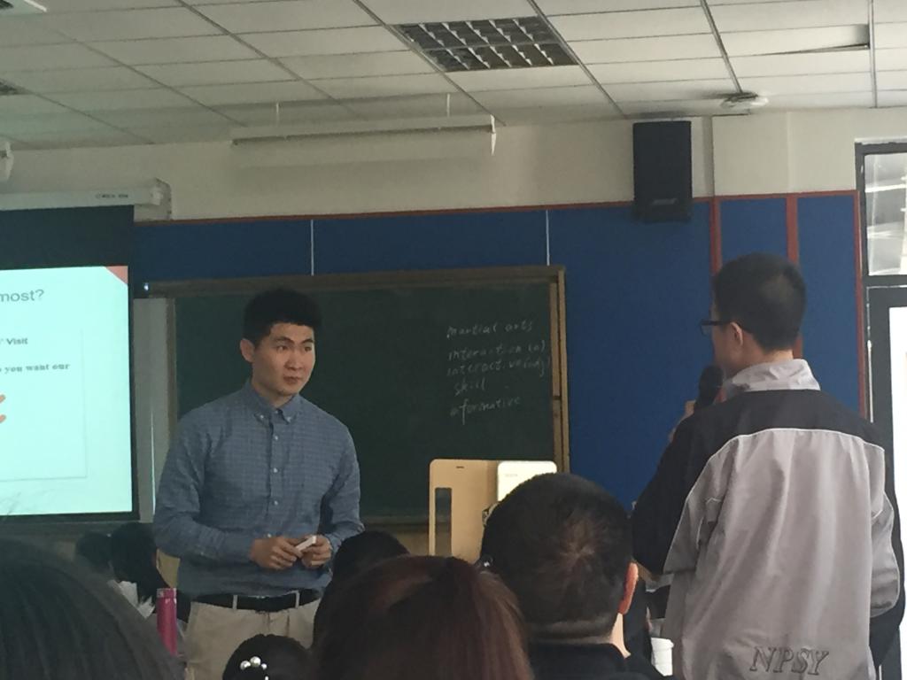 胡晓婕老师青春阳光,张永约老师则沉稳大方,两位老师各有各的风采特点,他们都精心设计了不少课堂活动,而学生在课堂上也都很活跃,踊跃发言,可以看出这些学生的基础扎实,口语流利。两位老师按照要求整合了这一模块的课文内容再进行上课,由浅入深,逐步引导学生进行自由深入的思考,他们的共同点是都鼓励学生主动发言。胡老师的课偏向基础,与课文内容和词汇的联系更紧密,注重学生课内的知识掌握;张老师则更多是拓展课外的内容,拓展学生的思维。接着英语组组长也简单介绍了她的教学方法:整体教学,一般两课时结束一模块内容,第一课时大容量输入呈现单词,第二课时输出,熟练应用等。最后,两位老师也耐心解答了老师同学们的一些疑惑,虚心接受听课老师们的建议。