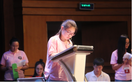 本次诗词大会的比赛分为两轮。第一轮名为群雄逐鹿,十五名参赛选手被分作五名挑战者与十人团,同台竞技,各自争锋。挑战者们个个有备而来,自我介绍时引经据典,落落大方,完美诠释了“腹有诗书气自华”。在比赛的过程中,选手们聚精会神,认真地作答每一道题。呈现在屏幕上的诗词题型丰富多样,有选择填空,也有诗句识别,涉及到的诗词大多耳熟能详,让台下的同学们也能积极地参与其中。第一轮中表现最佳的四名选手进入到第二轮的角逐。第二轮名为突出重围,比赛采用抢答的形式,现场气氛紧张刺激。在飞花令的环节中,选手们上演了一场惊心动魄的诗词争夺战,在短短的几十秒时间里,一句句带“水”字的诗词纷至沓来,引得台下同学们一阵热烈的掌声。来自16中本二班的邢佳丽同学表现出色,通过重重关卡,成为了本次大会的状元。最后,陈伟娜老师对本次大会进行了精彩的总结。