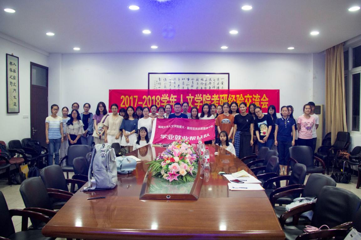 2018年6月21日18:30,樱花小说 “星火·薪传”党员服务中心团队于人文楼213教室成功举行了考研经验交流会活动。文艺学教研室老师孙鹏程、学检部全体成员、樱花小说 三名考研成功的同学陈漂、赵丽娟、周思祺及部分本科生共同参与了本次交流会。本次考研经验交流会由学生第三党支部书记徐珍主持。