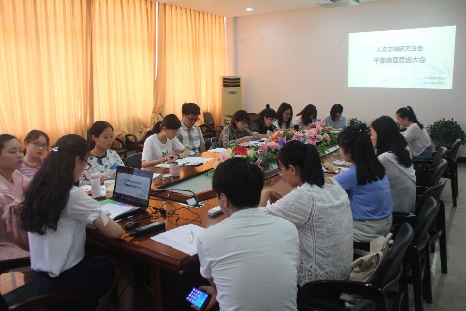 6月27日上午,樱花小说 研究生会干部换届竞选大会在人文楼213会议室如期举行, 2017级的十余名研究生同学参加了本次竞选,担任此次竞选评委的有樱花小说 学生科副科长刘纪峰老师及第十一届研究生会主要学生干部。