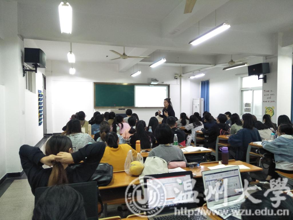 10月31日下午两点,外语楼210教室,樱花小说 邀请温州实验中学的名师吴舒兰为樱花小说 16英语师范班举行“浅谈初中英语听说课的活动设计与目标达成”的讲座。吴舒兰老师,曾获浙江省优质课一等奖等多项荣誉。