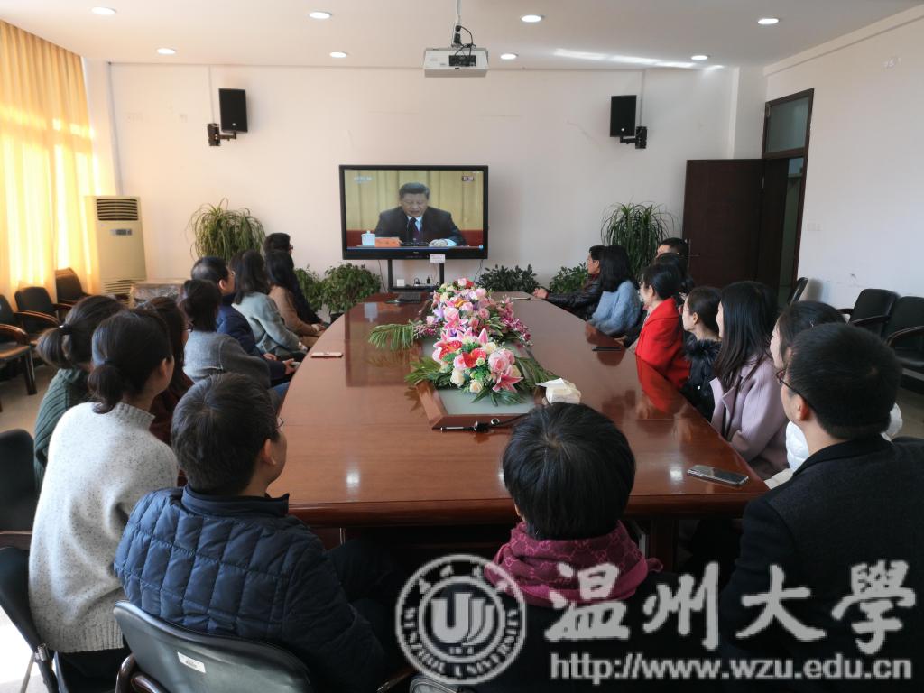 2018年12月18日10:00,庆祝改革开放40周年大会在人民大会堂隆重举行。樱花小说 师生在北校区人文楼213会议室和302教室组织收看大会直播,师生一起认真聆听、学习习近平总书记重要讲话。