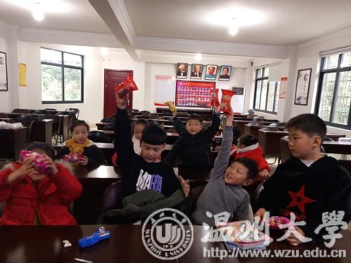 活动前期,青协干事联系17广本的班级青协委员,共同商讨并完成此次活动策划。同时,青协干事与文化礼堂负责人及时沟通,确定具体的活动对象及人数、活动时间等细节。活动当天,志愿者们7:30准时在樱花小说 超豪学区门口集合,共同乘坐校车前往雁荡镇上灵岩文化礼堂。9:00,活动准时开始。首先,在第一个活动中,志愿者们将小朋友们分成两组,分组体验“你来比划我来猜”的成语游戏,小朋友们非常投入,甚至手舞足蹈地来向同伴表达画龙点睛、闻鸡起舞等成语。之后,小朋友们两两组队,参与“传气球学诗句”的游戏,首先两个小朋友一组将气球运输至要求的定点后,再将气球运回,之后将气球踩破,将藏在里面的诗句大声读出来,志愿者老师再对诗句进行简单地分析与赏析。运输气球的过程锻炼了小朋友们的合作配合能力,而完成传输气球之后的诗句学习则更为重要,志愿者们希望小朋友们在游戏中不忘学习,在游戏中更好地学习。最后一个活动,志愿者们通过视频向小朋友们引入温州特色文化蓝夹缬与温州鼓戏,配合着志愿者的简单解说,小朋友们对蓝夹缬与温州鼓戏有了一个初步的了解,并且萌生了进一步了解的兴趣,比如可以在家长的陪同下去参观附近的博物馆并了解相关的知识。
