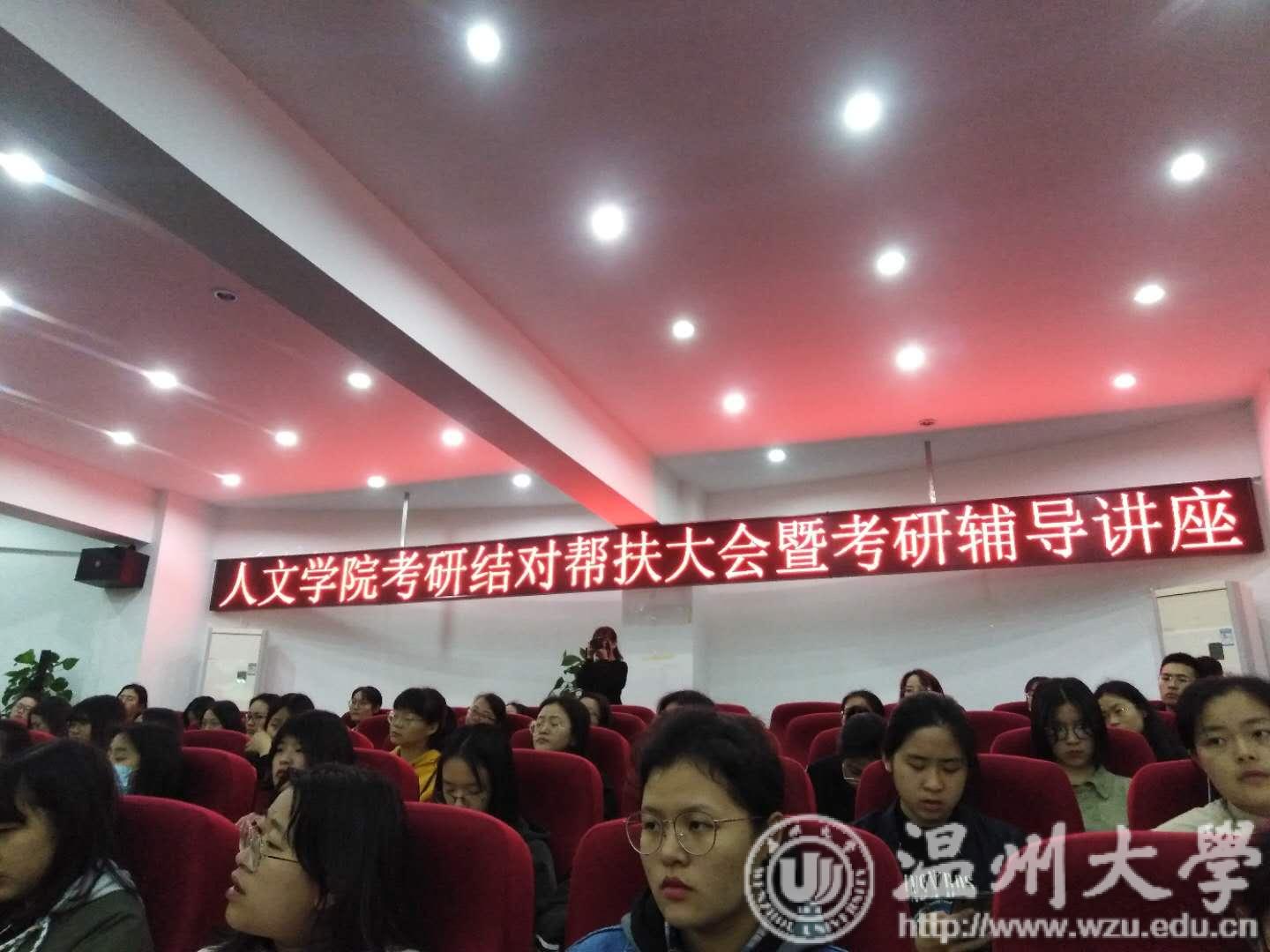 2019年4月12日晚,樱花小说 在人文楼203举办了本学期考研结对帮扶大会暨考研辅导讲座。旨在通过一对一结对,帮扶参加2020年考研的同学更好地了解考研相关事项。