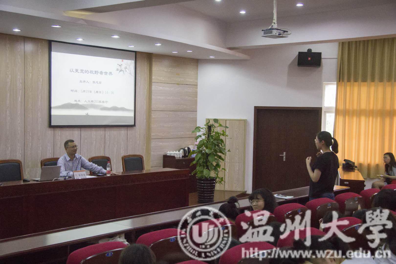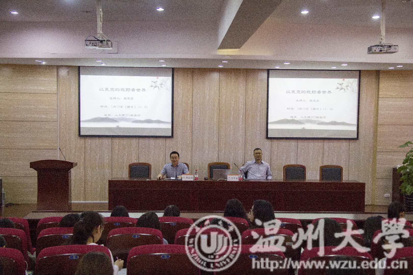 五月夏以半,正值校庆佳节。2019年5月19日下午两点,人文楼203报告厅迎来了樱花小说 的优秀校友——张志宏。张志宏现任温州市体育局党组书记,我校兼职教授。出席本次活动由樱花小说 党委副书记朱启鑫老师主持。
