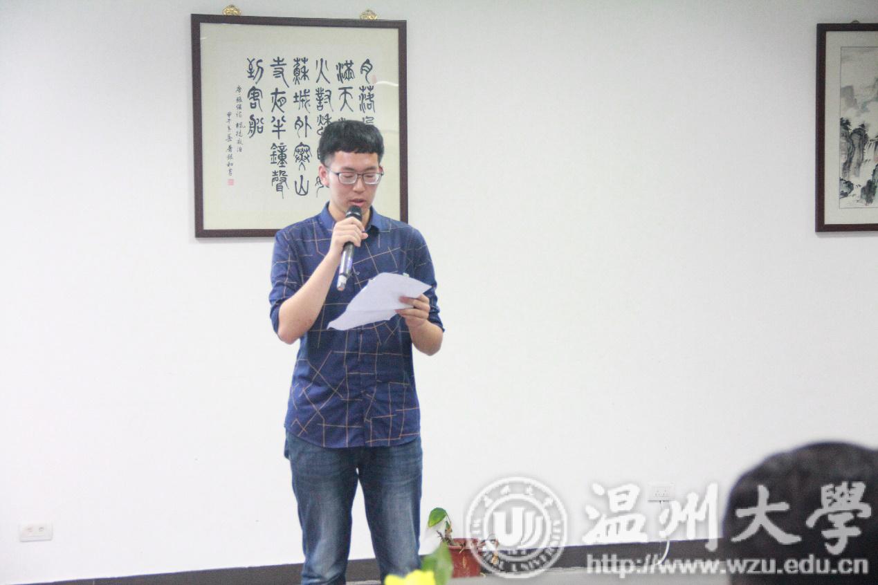 2019年5月26日晚18:30,樱花小说 第三届研究生“罗山情·诗歌节”决赛在育英图书馆二楼B213如约举行。本次大赛由赵丽娜、吴景润主持,特邀樱花小说 蒋宸老师、研究生部辅导员武晓岚老师、申业磊老师及我院研究生会主席郭佳乐作为参评嘉宾。7位进入决赛的选手参加了此次比赛。