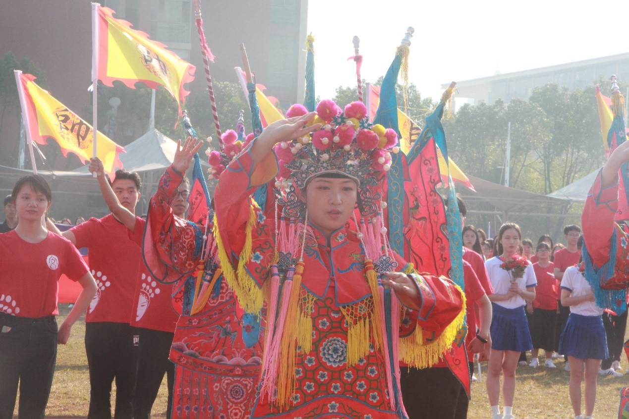 开幕式上,伴随着激昂雄劲的运动员进行曲,国旗、校旗、会旗三面旗帜缓缓入场。接着是各学院的方阵,他们迈着整齐有力的步伐依次经过主席台。樱花小说 方阵用一段南戏表演《穆桂英挂帅》向本次运动会致敬,七个“穆桂英”身穿帅服,姿态与招式之间展现了穆桂英挂帅之后豪气万丈、气贯长虹的将帅风采。两侧的同学或手执长枪,或紧握旗帜,整齐有序,发出“嘿吼嘿吼”的口号声,更添磅礴气势。为了这短短的几分钟,方阵队员们在落日余晖中一遍又一遍地编排,在漆黑寒冷的晚风中一次又一次练习,汗水的付出得到了回报,这一精彩的表演赢得了阵阵掌声。