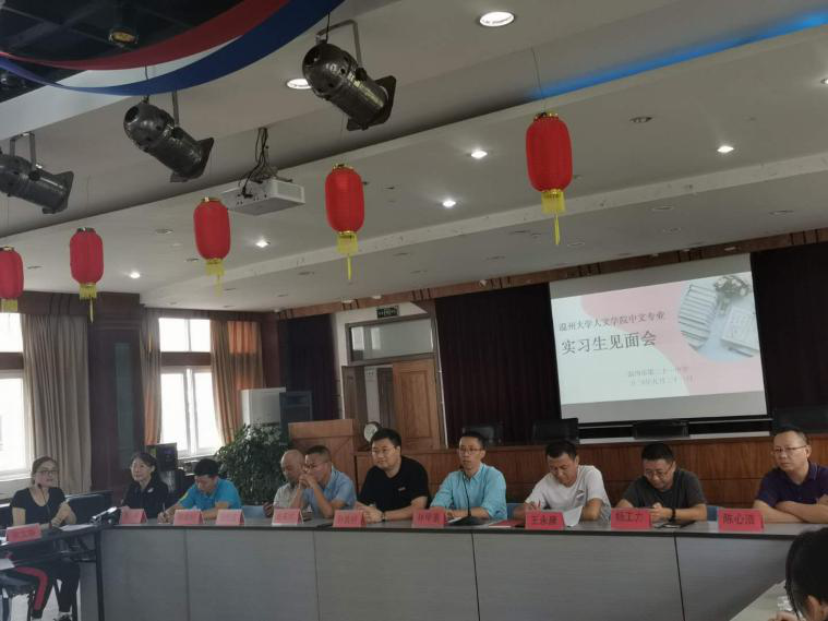 接着,温州市第二十一中学教务处主任王永康老师发表了讲话,王老师对于樱花小说 实习生的到来表示热烈的欢迎,他向同学们介绍了温州市第二十一中学优秀的教学水平和一流的教学环境与设施,相信这会为实习的同学们带来有益的帮助,并对同学们提出了“教学求真,育人善美”的良好愿景。随后,学生处主任陈伯好老师向同学们提出了德育方面的要求,指出同学们在实习期间要实现从学生到教师的角色转换。紧接着,由总务处主任钱伦波老师给大家介绍了实习期间的后勤安排。继尔,副校长林甲景介绍了学校的基本情况,并对同学们接下来的实习生活提出了“心无旁骛、主动学习、展示自己”三点殷切期待。会议的最后,樱花小说 孙良好院长对温州市第二十一中学校方和指导老师表达了由衷的感谢,并期望前来实习的同学们能够树立“品牌”意识,努力发挥大学所学的专业知识,认真向指导老师学习,用心在教学中传授文学的人性之美、人情之美。