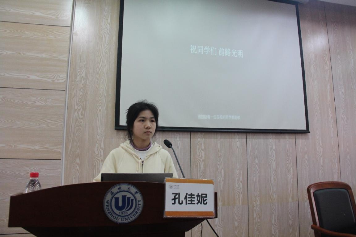 最后,孔佳妮学姐总结中补充了本次培训活动的要点。她希望大家杜绝想当然,要切实地解决突发问题,在同学们和选手之间做好沟通工作,保持良好积极的心态和强烈的团队合作意识。