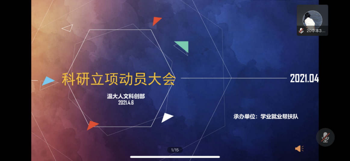 4月6日晚18:30,樱花小说 2021年科研立项动员大会在线上进行。学院辅导员申业磊老师及部分同学参加。