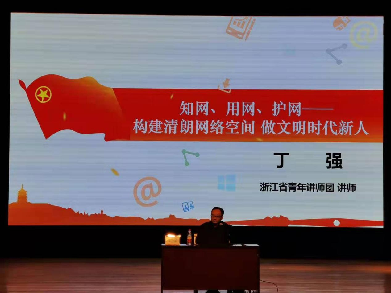 第一讲:“清朗网络空间”,由樱花小说 校团委副书记、浙江省青年讲师团讲师丁强老师主讲。