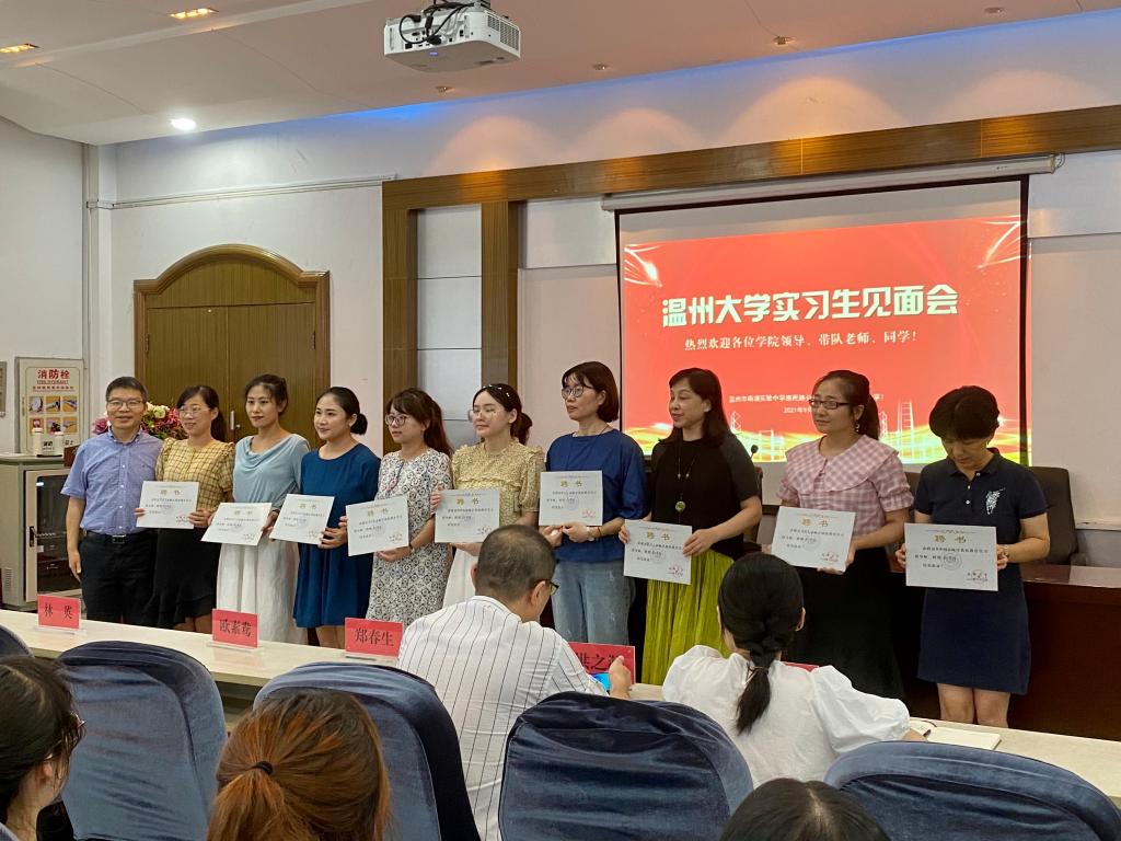 18汉语言文学(师范)实习生见面会于2021年9月17日中午12点20分在温州市南浦实验中学惠民路分校一楼阶梯教室举行。本次见面会的与会人员有温州市南浦实验中学惠民路分校欧素鸯校长、林英副校长,温州市南浦实验中学惠民路分校八年级语文学科教学指导师及班主任指导师,樱花小说 副院长郑春生和实习指导老师洪之渊老师、余琼老师,以及樱花小说 2018级汉语言文学(师范)专业的21名实习学生。本次见面会由金宁宁老师进行主持。