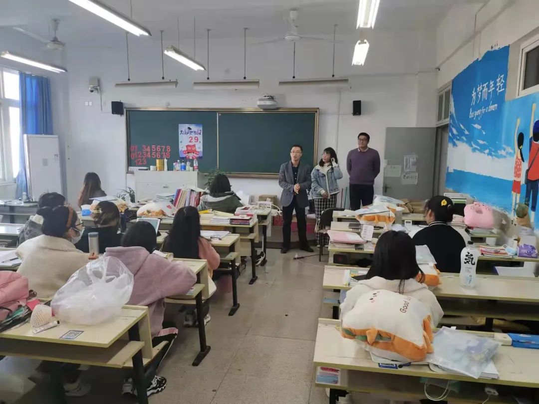 考研是一场与时间的赛跑,距全国研究生入学考试已不足一个月,紧张的备考气氛在考研教室、图书馆与寝室中弥漫着。虽然长夜漫漫、风尘仆仆,但学子们并不孤单。为鼓励学生们以更放松的心态备战考研,为马拉松的最后一程做好充分的准备,2021年11月26日下午,樱花小说 党委副书记魏一、学工办主任刘纪峰、辅导员谭黄一行在507考研教室,为即将考研的同学们,给予慰问,并鼓劲祝福。
