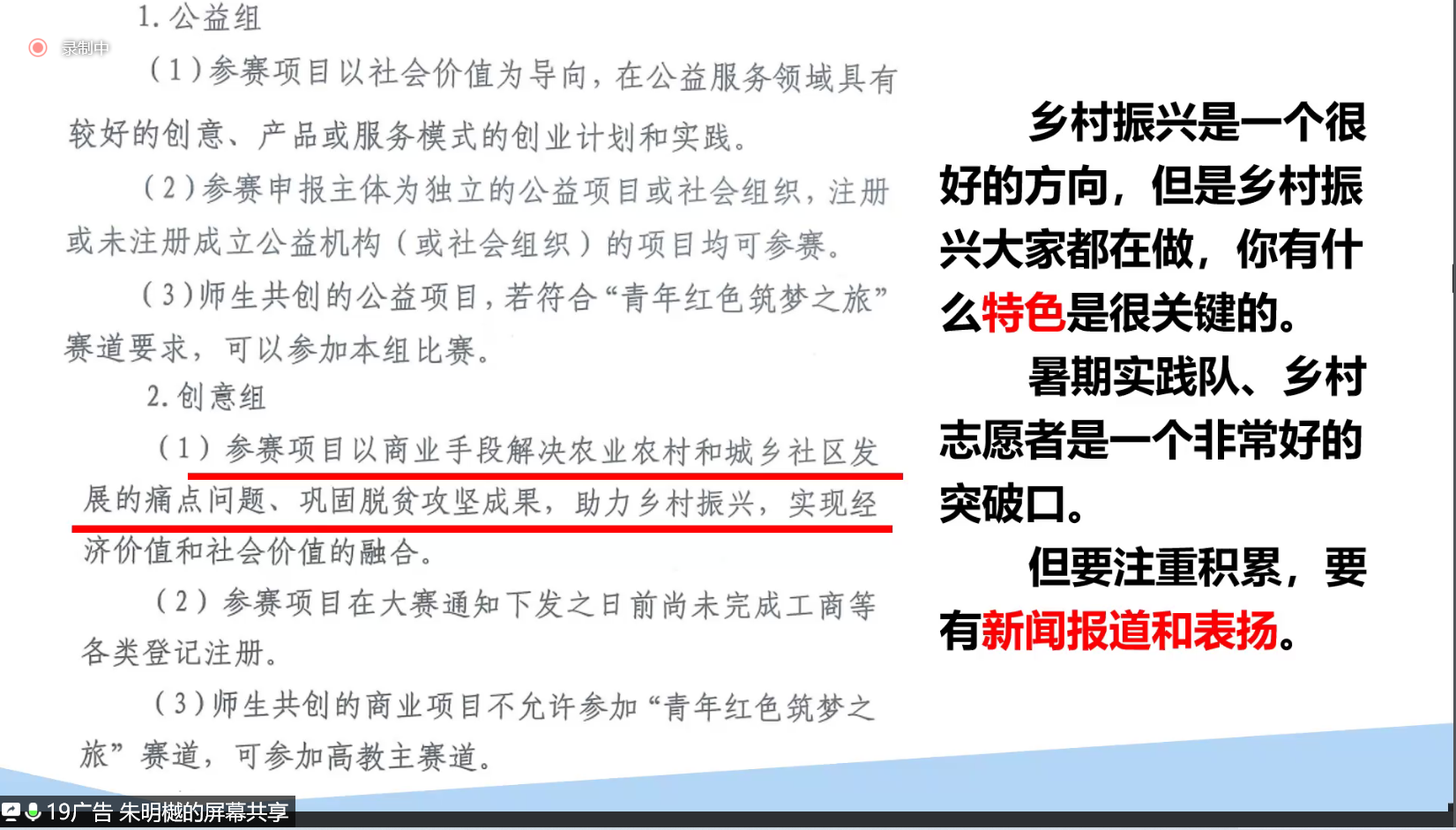 为让全院同学全面了解并更好地备战本届“互联网+”创新创业大赛,1月24日19:00,樱花小说 举办2022年第一期创新创业线上分享会。由19级广告学专业朱明樾同学主持分享。
