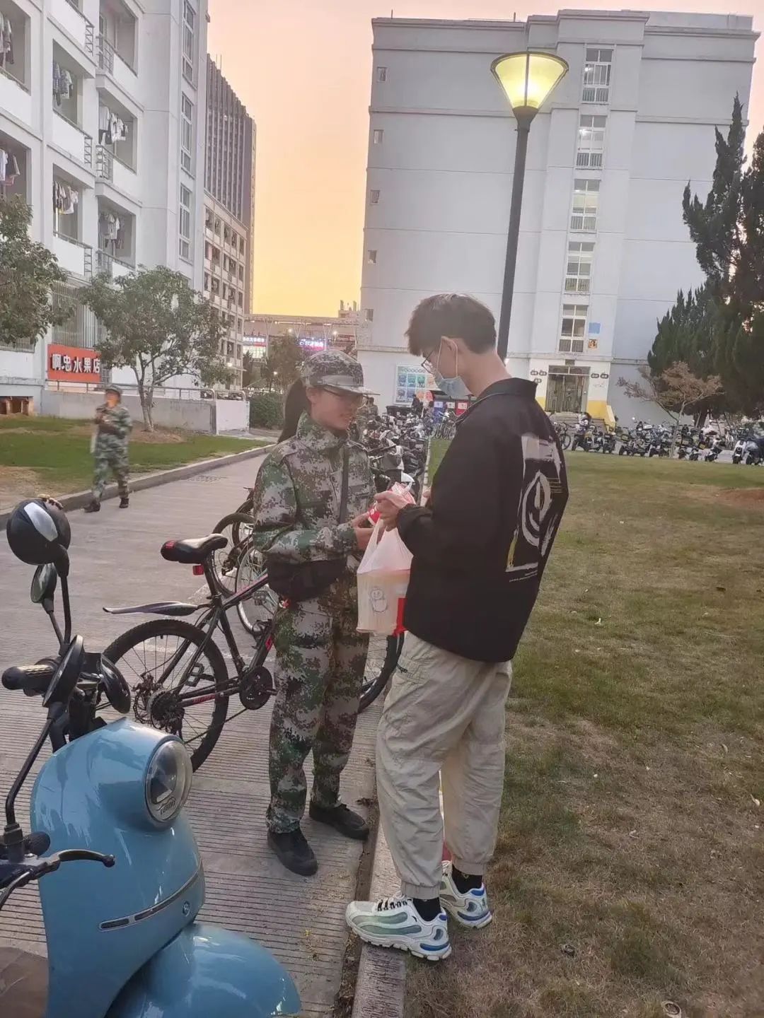 为确保军训秩序不受影响,排除对其他同学的干扰,栖风文学社确定了“不进操场,到点领取”的方针,提前以群内投票的方式确定社员们居住的学区以及可自由支配的时间段,高效完成了A、C、D、E四个宿舍区的“清凉站”设置。