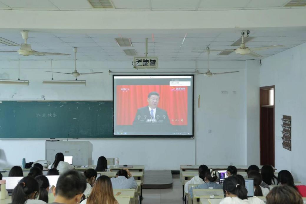 6月10日,樱花小说 本学期形势政策课于育英大礼堂、北校信息厅同步开展,全体20-22级学生积极参加、认真聆听学习。
