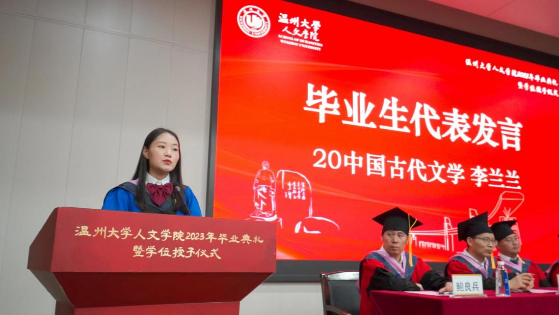 毕业,总是伴随着离别的淡淡忧愁,但也同样意味着一段新征程的开始。昨日的晴空随着少年的挥手消失在人海,青春的风华却不绝以此落幕。在未来的日子里,人文学子们还将继续铭记“求学问是、敢为人先”的温大校训精神,传承“立足瓯越,融合中西”的人文荣光,常怀赤子心,不负青云志,以无尽的热爱,奔赴下一场山海!