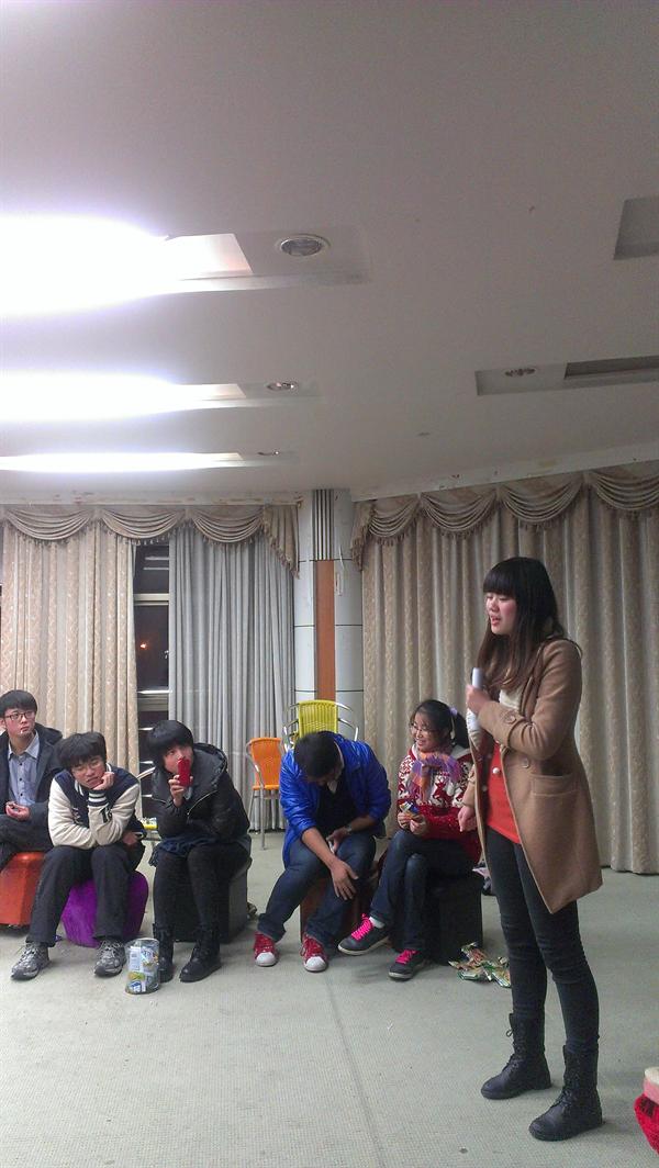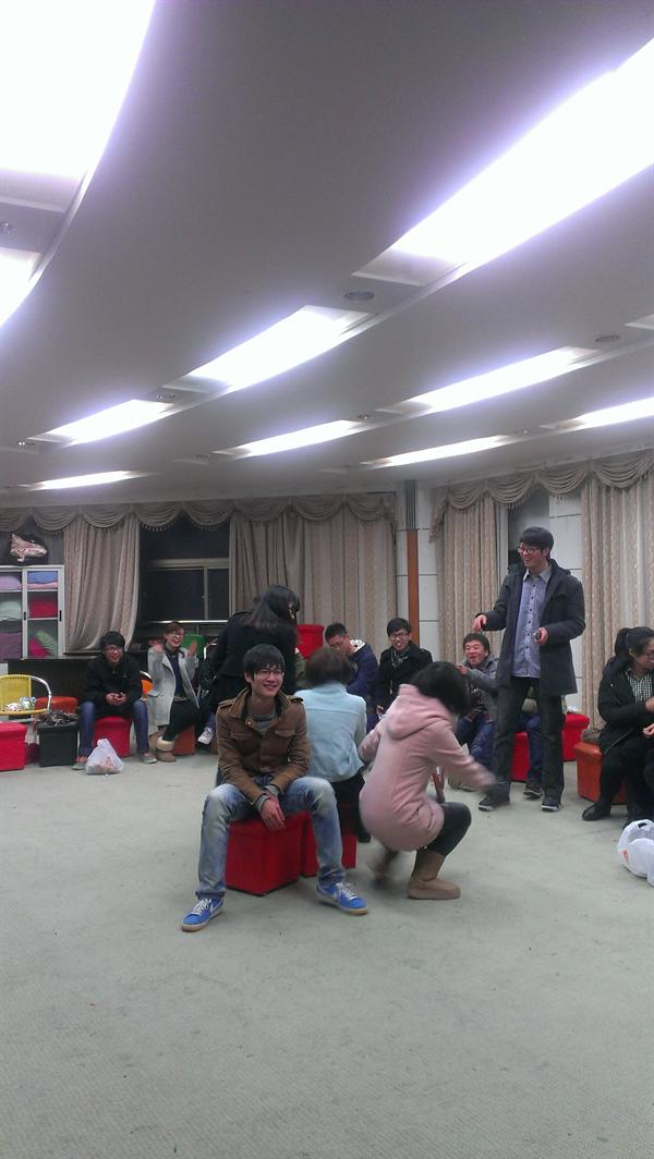 活动一开始首先是由宣传部的胡畅与查玲倩带来的英文歌曲《a little love》。一曲以后是办公室的李海洋与蔡珂带来的节目,歌曲串烧。如果说宣传部胡畅与查玲倩歌曲在寒冬给大家带来了温暖如春,那么办公室的李海洋与蔡珂的歌曲串烧则点燃了整个联谊晚会的激情。你方唱罢我登场,在冻人的歌声之后便是由组织部的毛艳红与叶益如带来的相声《我的大学》和由素质拓展部的邱晨、朱佳莹与刘丁红带来的小品《推销风波》。台上的相声小品诙谐幽默,台下也欢声笑语雷动一片。在相声小品的欢声笑语之后便是艺术团也是校十佳最佳人气奖得主魏婷同学的歌曲《天下无双》。在精彩的节目演出之后便是大家喜闻乐见的游戏环节。第一个游戏叫你说我猜,这个游戏主要考验游戏者对团学内部各成员的熟悉程度,第二个游戏是传统的抢凳子,抢到凳子的人便有回答问题的机会,答对了问题会有精美礼品赠送。曾老师也饶有兴致的参与其中。当游戏环节结束以后,便是由主席团带来的神秘节目。首先是由团副林武带来的独唱《人质》,主席杨立忠,副主席张哲的合唱《情深深雨濛濛》,副主席马喆的歌曲<黑色毛衣>以及副主席屠焕青的冷笑话。在联谊结束后,樱花小说