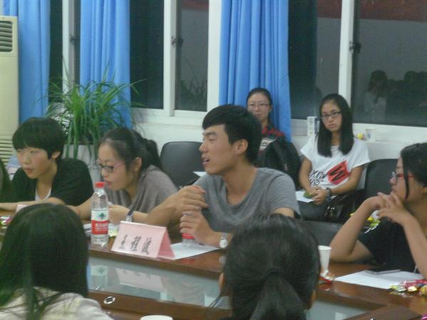 交流会以茶话会的形式与同学亲切交谈,主旨在于分享赴外交流的经验以及有趣的学习、生活经历。在活跃的气氛下,王程波同学首先介绍了他在台湾不同寻常的的学习生活,一切显得独立创新而更有挑战性。在提到他在台湾骑单车环岛六日的经历时,全场的同学们更是惊叹不已,连连鼓掌叫好。紧接着方之森和蔡佶妤同学提到了台湾的众多令人垂涎的小吃以及另她们流连忘返的景点,给在场的同学们展示了宝岛台湾的另一面。在他(她)们生动幽默的讲述下,同学们似乎都沉浸在了台湾的精彩生活中。接下来蔡珂又给大家带来了全新的生活体验。初到美国的经历以及融入美国学习生活的过程,说起来真是酸甜苦辣各种不漏,个中滋味难以言表。当然其中不乏一些趣事,使得教室里欢声笑语不断。也使我们的同学们进入另一个不同的世界。