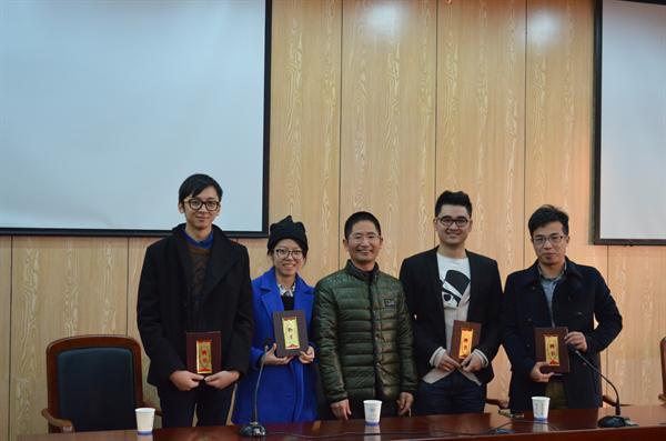 张信国老师还代表学院向四位优秀毕业生颁发了聘书,聘请他们成为校外辅导老师,告诉他们这是荣誉、激励,也是责任!希望他们能为学弟学妹们树立榜样,提供更多的学习经验。