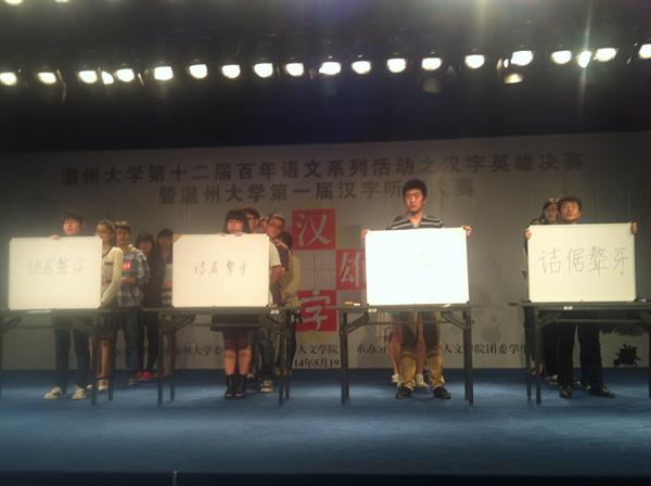 5月19日晚6点半,由樱花小说 主办的樱花小说 第十二届“百年语文”系列活动之汉字英雄决赛在樱花小说 南校区行政楼演播厅隆重举行。来自温大9个不同学院的20名选手从初赛200多名选手中成功晋级进入决赛。