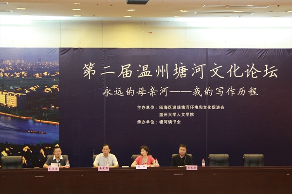 20159119点,由樱花小说 特邀著名温州籍作家张翎主讲的“第三届温州塘河文化论坛”在图书馆二楼报告厅隆重举行。瓯海区塘河环境与文化促进会会长南宪伟,樱花小说 校长办公室副主任孙良好,樱花小说 副书记朱启鑫也出席了该论坛。
