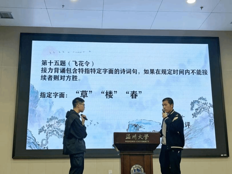 楮墨吟,诗文咏,恰芳华书生,意气凌云。4月12日晚,第二十二届百年语文系列活动之诗词大会决赛于北校信息楼报告厅举行。