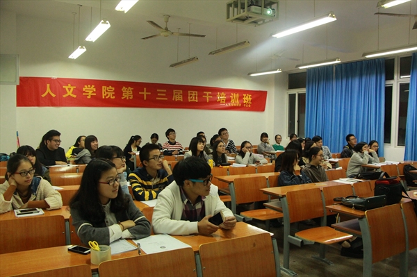 第十三届团学干部培训班第四课在人文楼105教室举行。本次团干培训由人文团学副主席宋淼讲解通讯写作的方法。人文团学全体新干事及大一各班班长、团支书参加了此次培训。 首先,宋淼同学向大家详细介绍了通讯写作的要求,包括通讯的基本特征、组成结构以及注意事项等内容。她指出,通讯稿的最大特征就在于其时效性,所以发布通讯稿一定要及时、准确,保证通讯内容的及时传达。她还结合实例,告诉大家如何写好一篇优质的通讯稿,并指出通讯稿是以图文形式向大家呈现的,所以拍摄高质量的照片尤为重要。在拍摄的同时要准确把握事件的核心要素,突出重点,才能在通讯稿之中起到点睛之妙。她又对通讯格式进行了具体要求。培训过程中大家认真听讲并做好笔记,并对有疑问之处进行了及时提问。