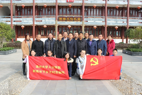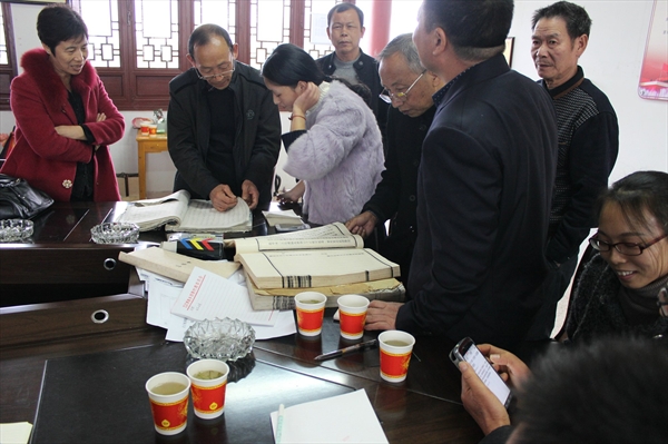 在西塍村的文化礼堂,村志编写小组与村委会负责人就村志编写的具体工作进行了商讨,小组负责人陈亚红把村志编写的内容以及思路进行了汇报,并认真听取了西塍村负责人提出的编写意见与要求。之后,村委会成员带领小组对村中的祠堂、碑刻及宗谱进行调查,以便小组深入了解西塍村的概况,方便以后的村志编写。