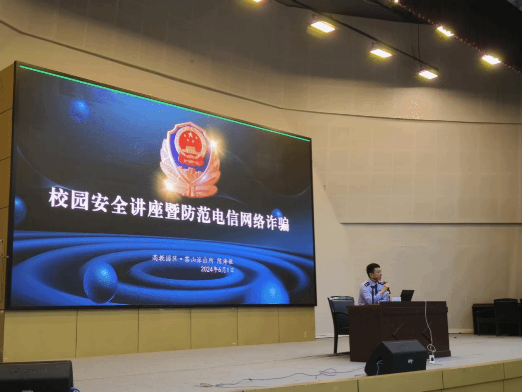 上午8:30,茶山派出所副所长陈海敏警官结合经典案例分析,通过沉浸式的宣防手段,从“诈骗手段”“受骗情况”“电诈警情”“防范方式”四方面为同学们带来了一堂生动形象的电诈防范知识普及讲座。对于当下毒品泛滥、邪教组织思想渗透的危险现象,陈警官也进行了“远离毒品”和“反邪教宗教渗透”的普法教育,并表达了对同学们未来身心发展的深刻关切,期望同学们能够进一步提升安全防范意识,做好自身安全防范的第一责任人。