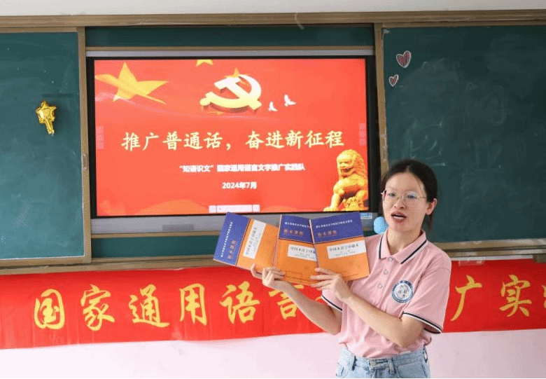 一字一句普通话,一笔一划方块字,千言万语中华情。实践队成员们以“推广普通话,奋进新征程”为主题进行理论微宣讲,倡导孩子们从自身做起,从现在做起,互相鼓励,说好普通话,共同创建和谐语言文字的校园环境。