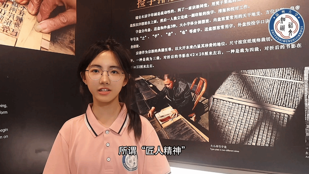 非遗不只需要传承,还需推广,因此实践队成员还采访了青年传承人潘昱丞老师。作为一名非遗文化的挖掘者、传承者和传播者,他致力于木活字印刷相关的文创产品研究与开发,以创新性、年轻化的方式来展现木活字印刷技艺的历史价值与文化魅力,实现传统与现代的有机衔接,赋予这一古老技艺新的文化内涵和时代生命力!