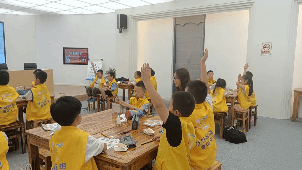教室里,实践队的队员们用他们温柔而坚定的声音,编织着一场关于知识与交流的盛宴。“这个字念‘jiāng’,是长江的江,记住了吗?来,跟我一起说,‘长江,长江,源远流长的江’。”队员们不仅纠正着孩子们的发音,更在每一次互动中,让普通话的韵律之美流淌进每个孩子的心田。推普课堂成为一场生动的语言学习之旅。实践队的队员们,满怀热情与爱心,为孩子们的学习之路铺设了一条充满希望的康庄大道,让普通话的芬芳在每一次课堂中悄然绽放。
